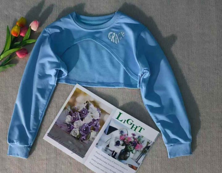 纯棉短款辣妹卫衣,设计感新款罩衫鱼鳞布靓妹上衣,28...