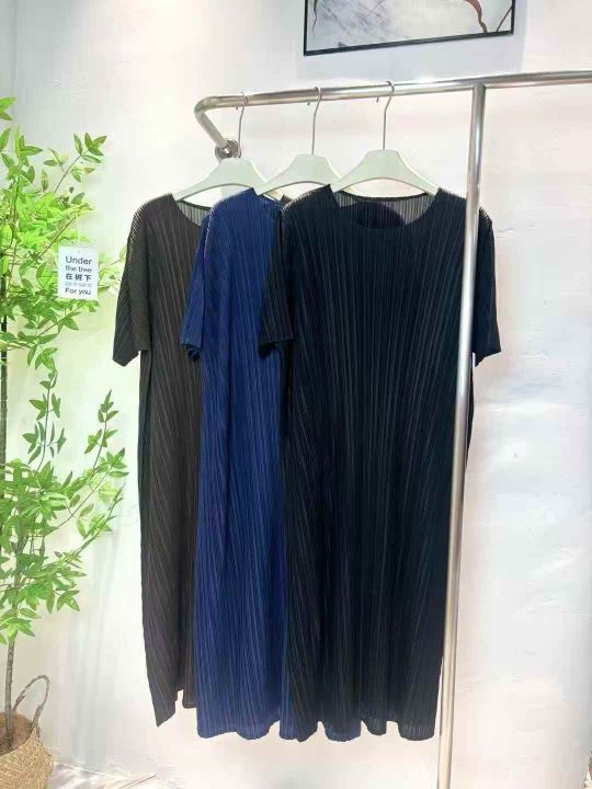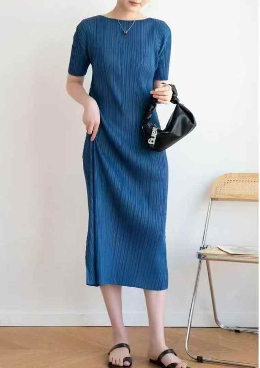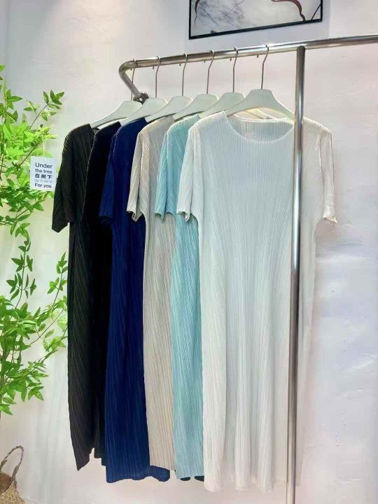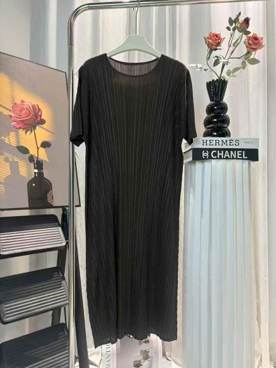 380件左右三宅褶皱连衣裙女高端气质简约修身显瘦短袖中长款连衣裙,均码,高弹力,独立包装,全清32.8