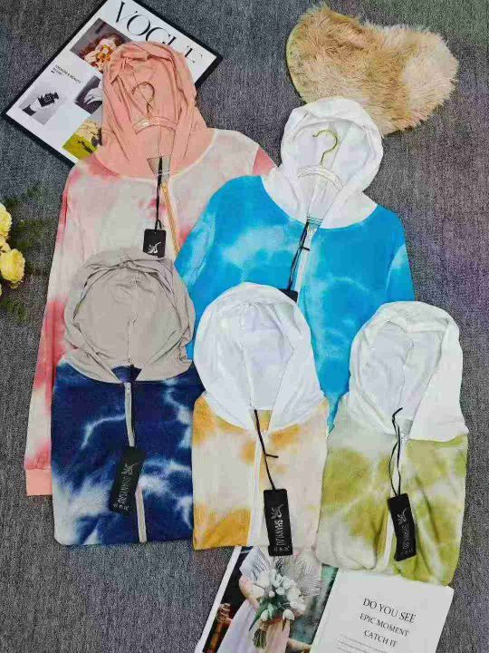 天猫仓回收4264件多巴胺扎染轻薄款针织衣休闲连帽拉链外套,均码可穿80-130斤。吊牌价688元,版型很好。质量款式非常好,全部独立包装带吊牌,分货➕1