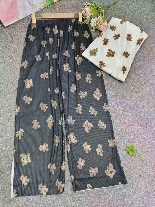 小熊印花风格百褶裤女宽松百搭垂感阔腿裤高腰直筒裤休闲裤,独立包装,整款2色,1-5码,130件左右,4.9元秒杀价!!!