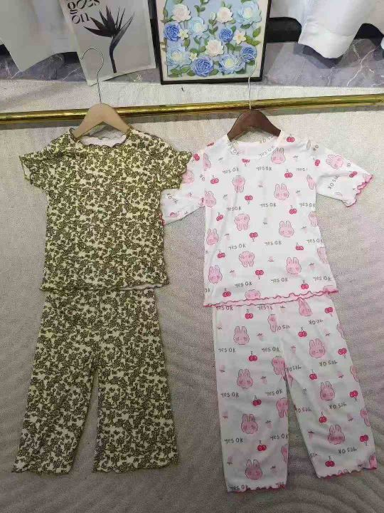 儿童冰丝透气家居服睡衣套装 数量19000套 尺码90--150 有短裤短袖套装 有长裤短袖套装 有长袖长裤套装 颜色很多logo很多 独立包装带吊牌 大货干净整洁