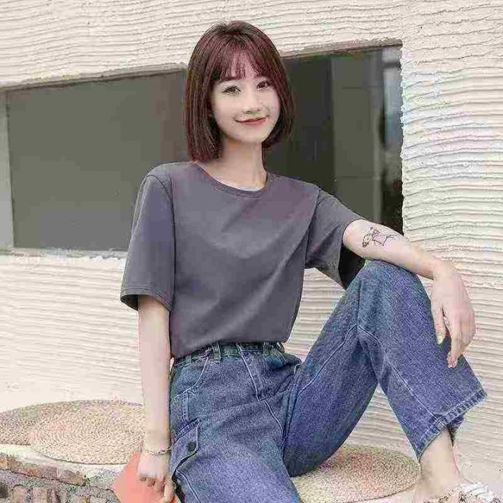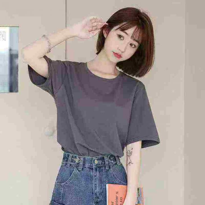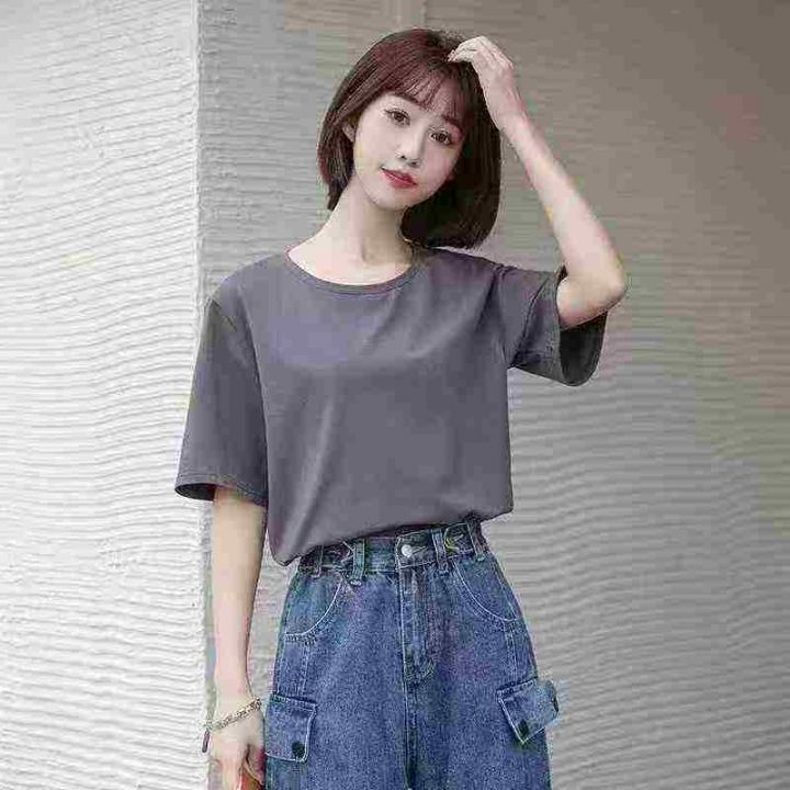 简约通勤宽松遮肉显瘦休闲百搭T恤,[爱心]100件左右,单款单色,码数S-3XL,穿70-140斤,工厂原包原吊无瑕疵