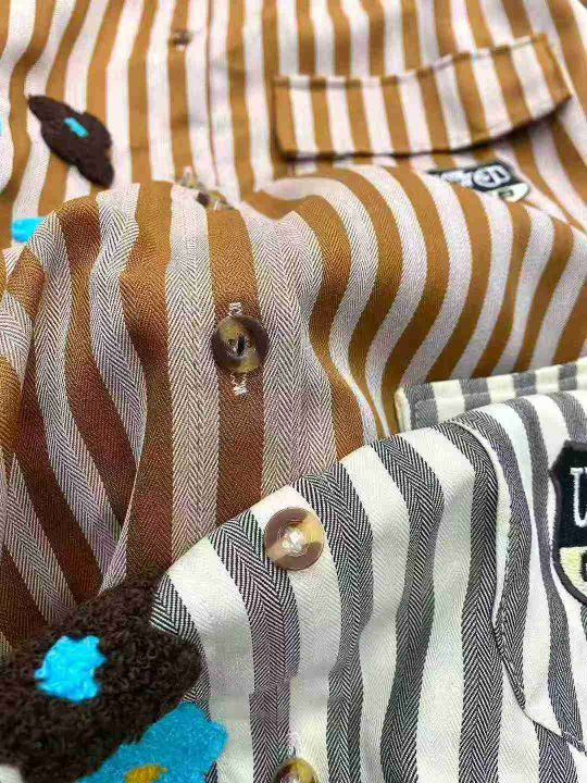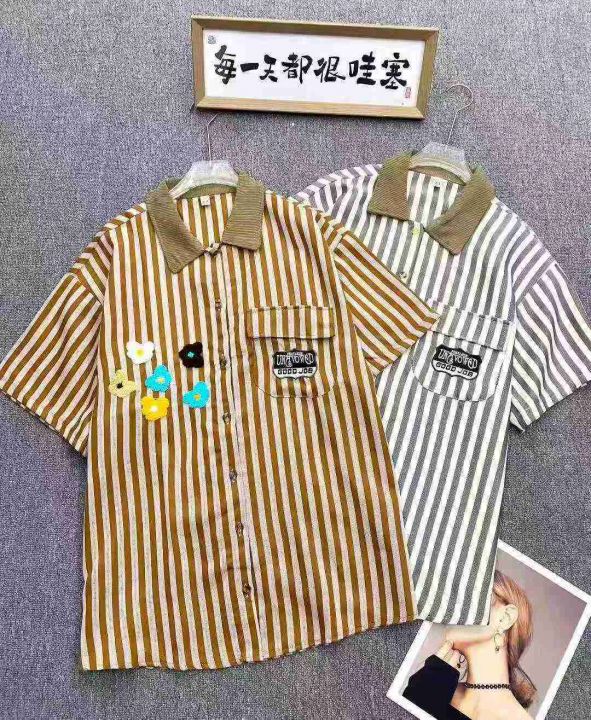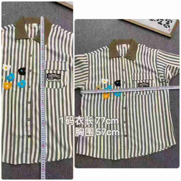 休闲条纹短袖衬衫135件9.5,撞色拼接,字母刺绣,花朵...