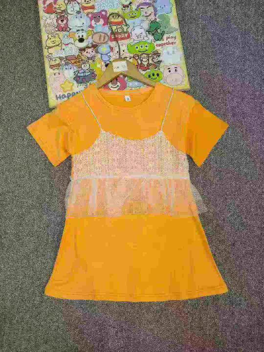 全清6.8250件女中大童中长款连衣裙夏装洋气女孩韩版短袖蕾丝假两件吊带T恤...