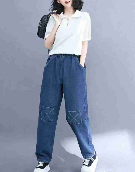 春季新款复古洗水棉高腰宽松设计款松紧腰牛仔老爹哈伦裤,独立包装,码数S-2XL码 ,1153,全清7.8元超低价秒杀!分货加一!