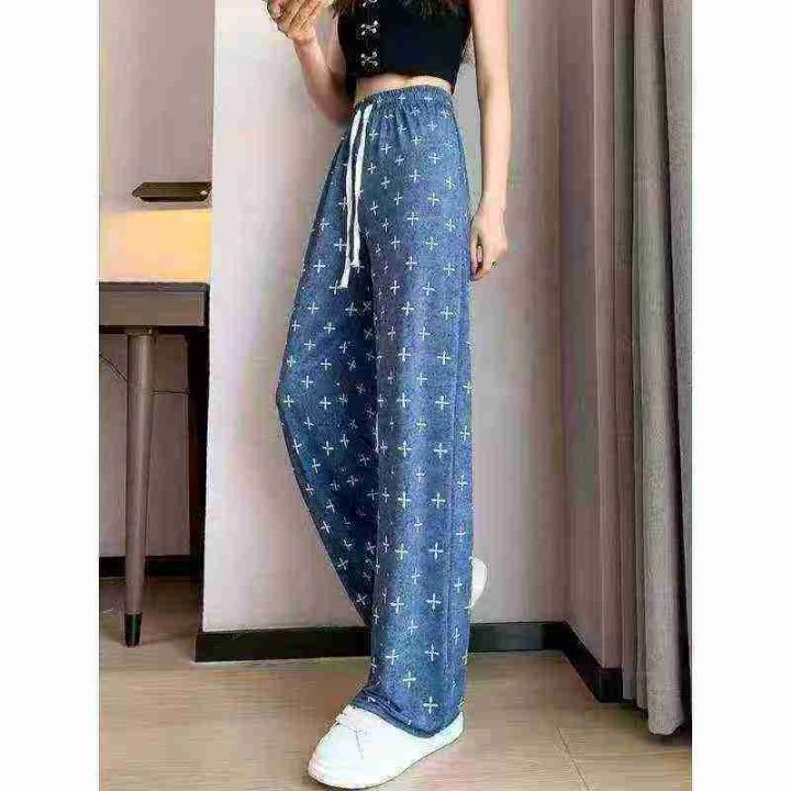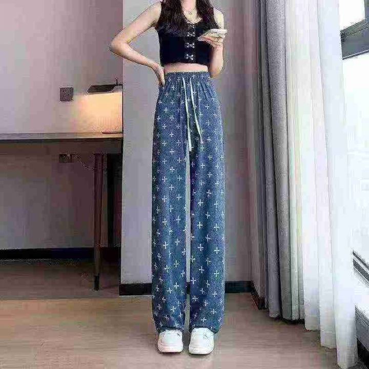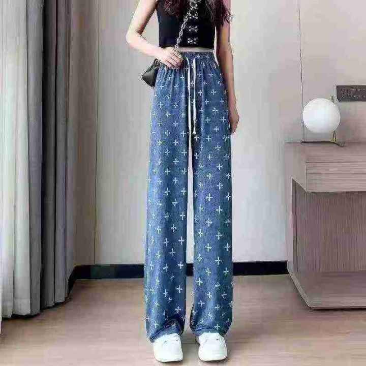 冰丝牛仔直筒凉凉裤,高腰夏季百搭薄窄版阔腿裤,宽松显瘦女士,休闲裤 ,