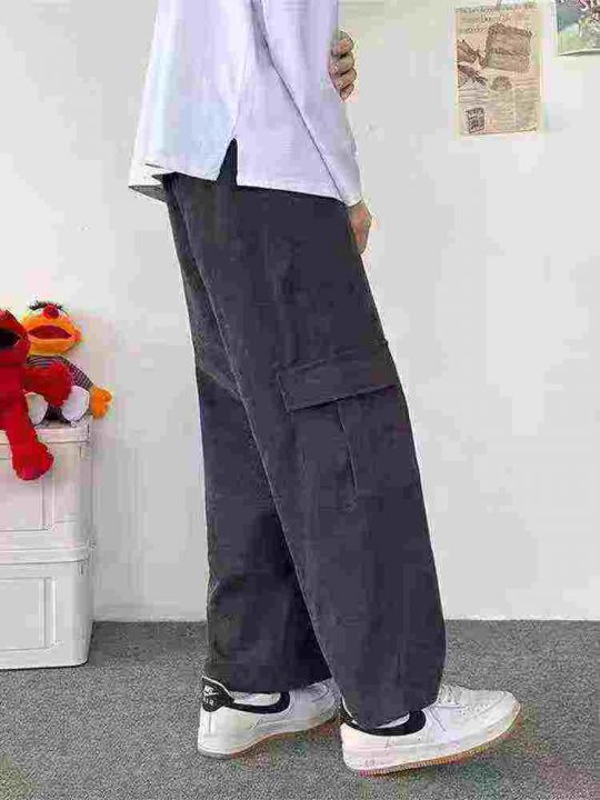 侧边条纹灯芯绒男冬季加绒加厚潮牌宽松束脚裤子,整款...