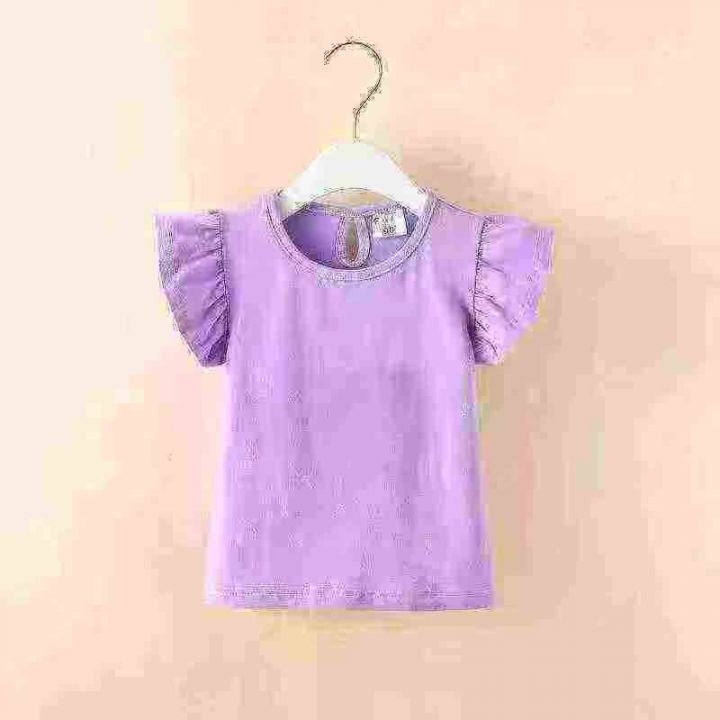 全清4.9韩版夏季儿童装短袖T恤2025女童上衣宝宝无袖甜美纯棉飞飞袖洋气,10...