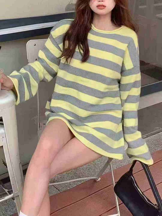 5.9元清秋季新款宽松长款条纹针织衫,数量2000件左右...