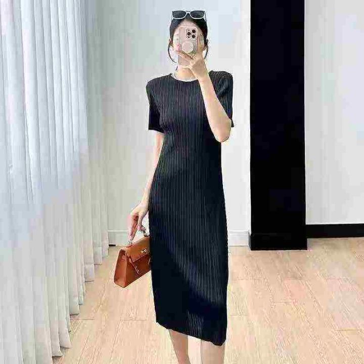 380件左右三宅褶皱连衣裙女高端气质简约修身显瘦短袖中长款连衣裙,均码,高弹力,独立包装,全清32.8