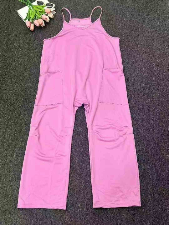 欧美大码V领胖MM浅绿色口袋宽松休闲吊带连体裤,独立包装,700件,S-2XL,全清6.8分货➕1