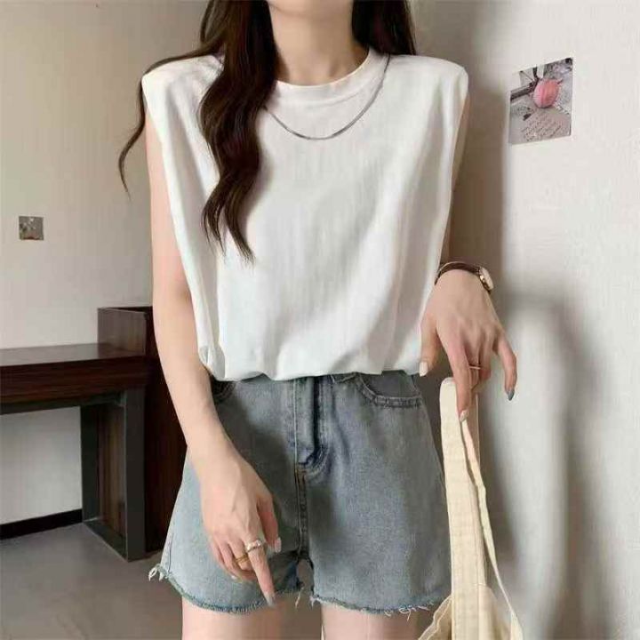 夏季圆领背心无袖t恤女时尚洋气减龄修身短款坎肩百搭...