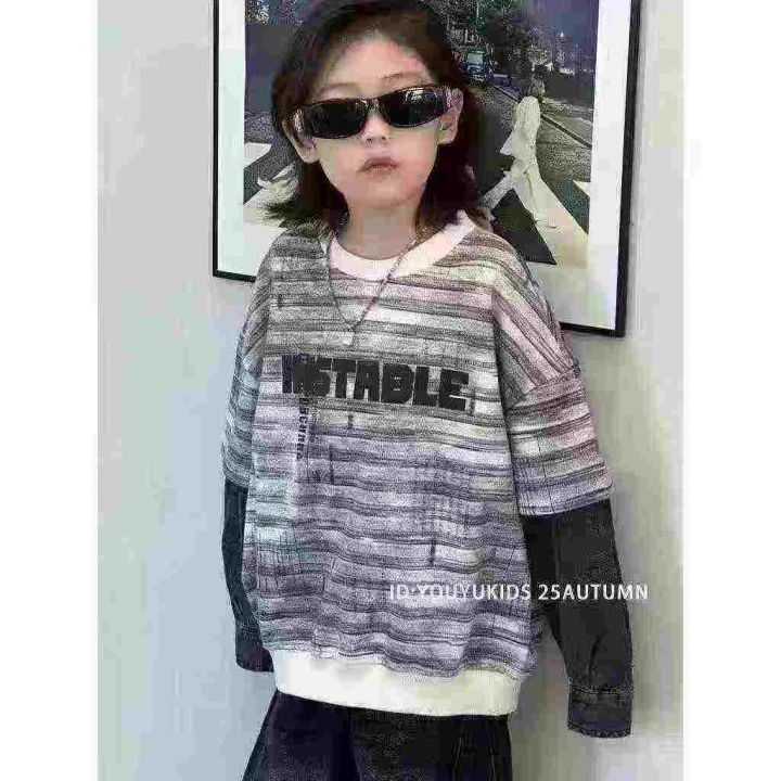 3.9清电商仓回收404件美式扎染假两件潮儿童卫衣,码数...