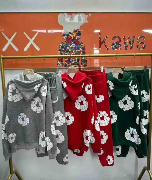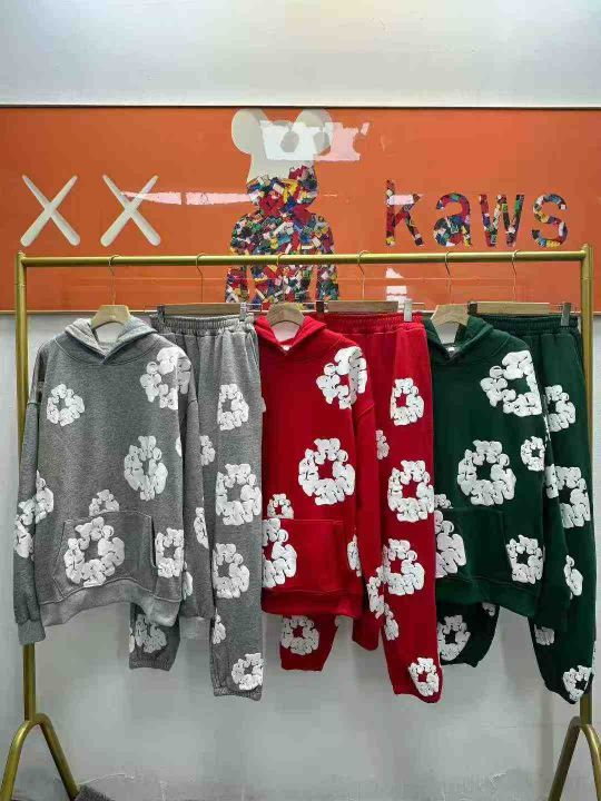 天猫在售款90套左右高品质男女同款华棉纯棉加绒加厚连帽卫衣卫裤套装,内里加婴儿绒,发泡印花工艺,单款三色,S-XL,独立包装