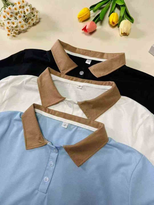 夏季韩版男女拼色百搭宽松洋气时尚翻领POLO衫上衣,整款三色,领口有包边,品质好,有独立包装,数量430件左右,码数1-3,全清6.8,分货+1