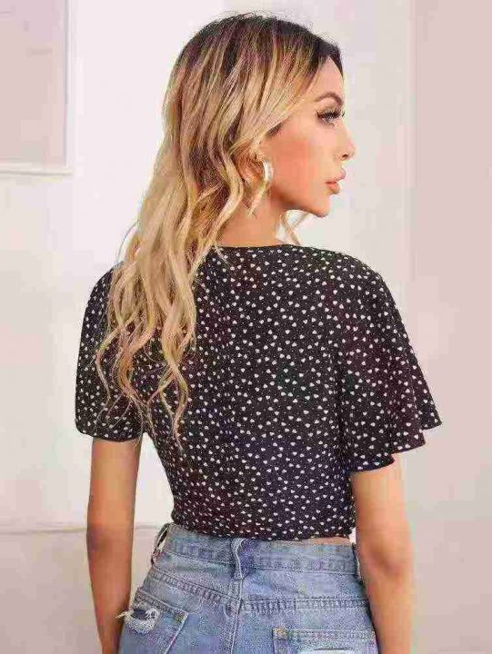 [月亮]:5.5清443件[月亮]:欧美辣妹深V绑带碎花上衣[月亮]:S-XL,独立包...