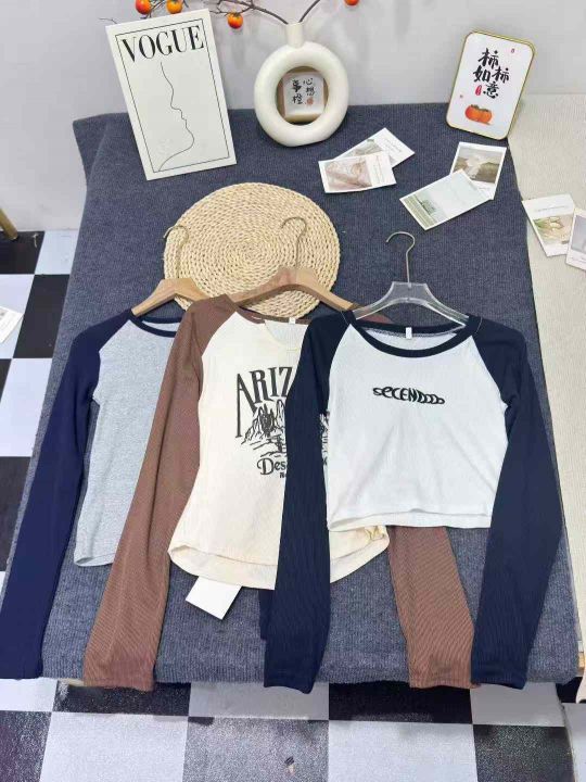 网红辣妹纯欲风净色抽绳印花短袖长袖女T夏季春秋修身显瘦上衣美式ins潮,品质,小整微杂,数量528件,码数m-2xl,独立包装,全清6.8元,分货7.5元