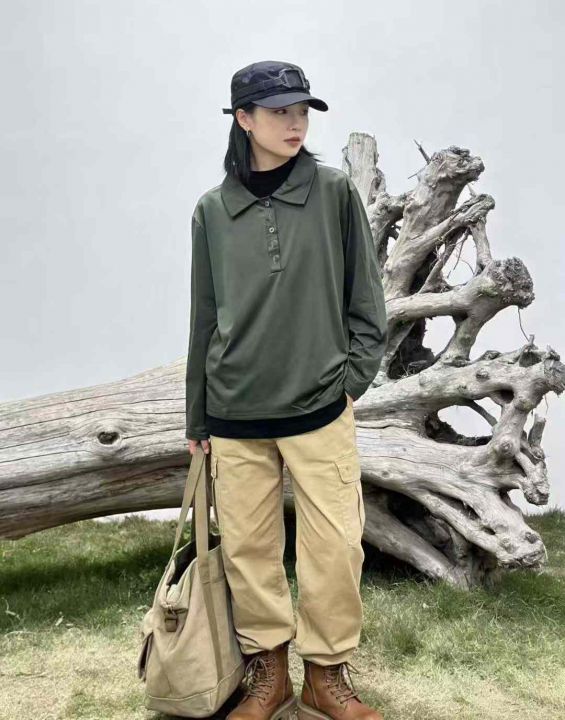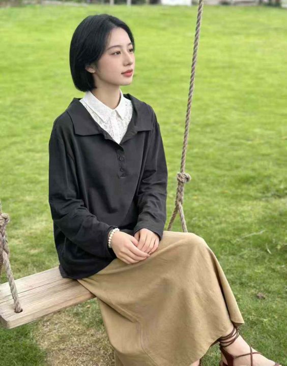 舒适弹力长袖薄款衬衣女外穿时尚简约宽松显瘦POLO领套...