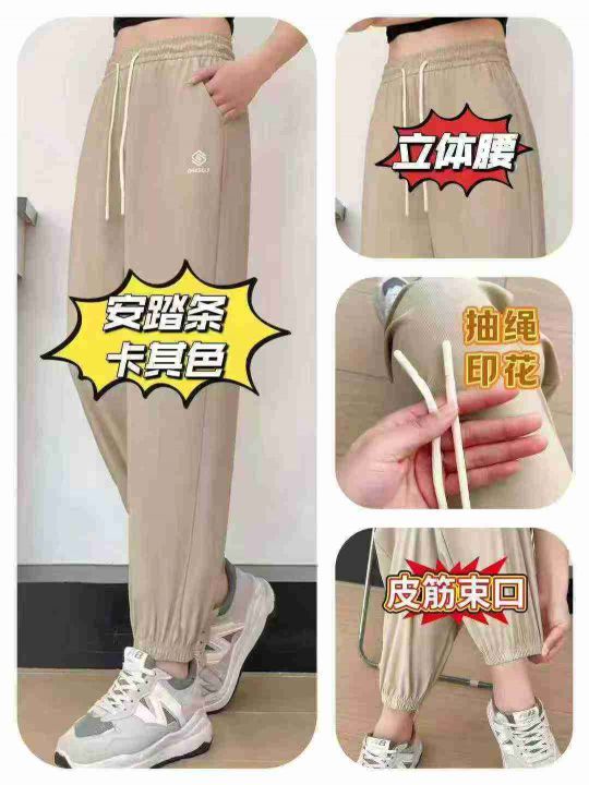 14元[太阳]编号2冰丝裤,女士宽松,大码束脚,速干裤子时尚运动简,约百搭...