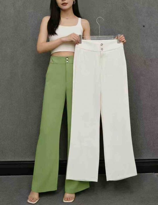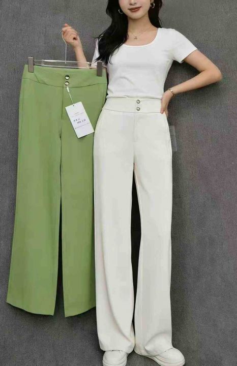 天猫下架一批高品质双扣高腰垂感阔腿宽松直筒女西装裤,独立包装,码数S~3XL(大码数多),整款两色(果绿为主),货品新净[强],M码裤长99厘米,319条,全清8.9元,分货加1