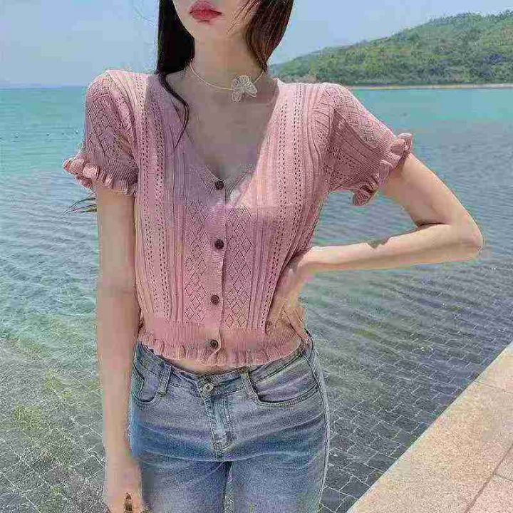 夏季新款法式别致独特短袖针织开衫,独立包装,均码,单款多色,面料柔软舒适有弹力,2450件,全清6.9元超低价秒杀!分货加一!