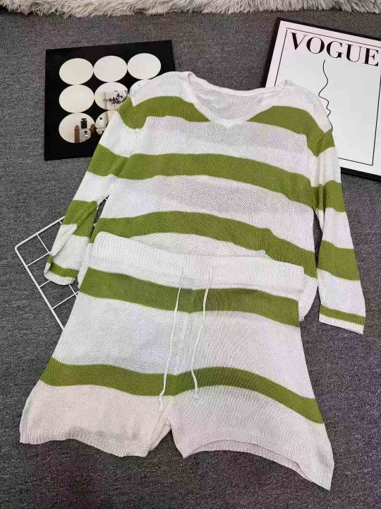 98套\'具体点数为准\'长袖薄款时尚百搭条纹针织短裤套装,独立包装\'均码,货号001#30