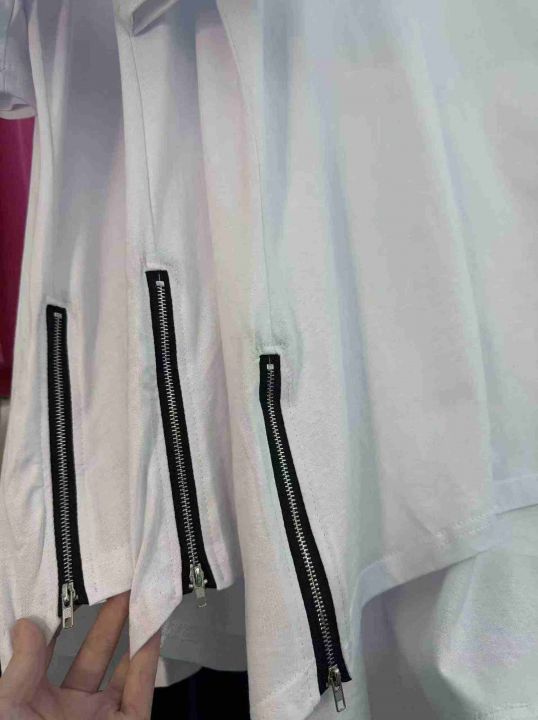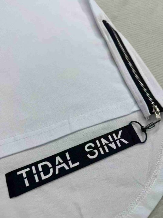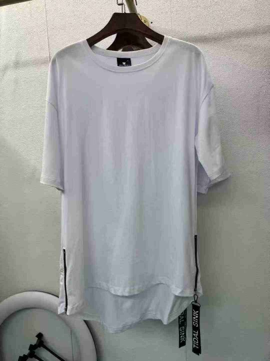 整款纯色短袖男女同款侧边拉链圆弧下摆嘻哈潮流风格