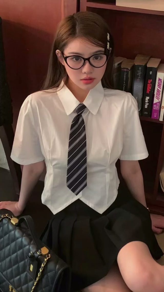 学院风条纹短袖衬衫469件,全清7.9,分货8.5,Polo领,拼接设计,后领包边...