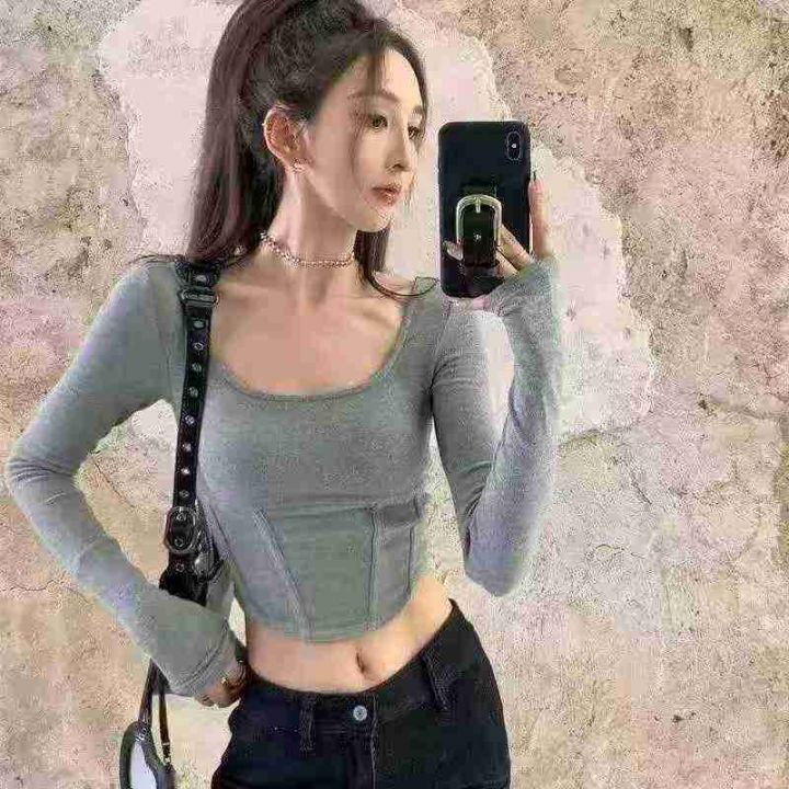 [月亮]:早秋长袖辣妹短款上衣