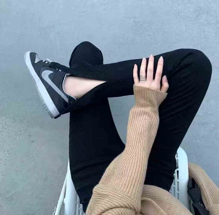 纯黑色高腰提档窄版直筒秋款牛仔裤女款秋季秋款加厚弹力修身显瘦长裤子 钢扣 拉链独立包装
