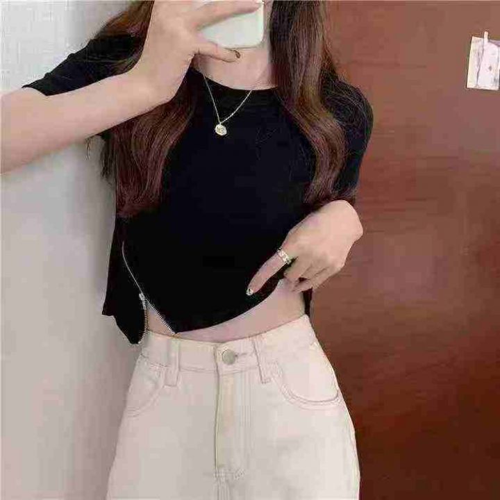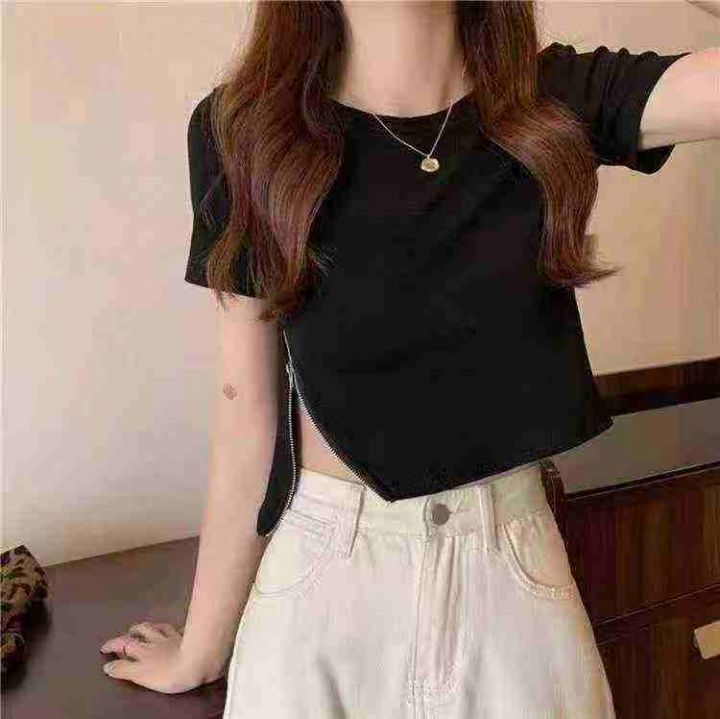 天猫在售款400件左右高品质韩版修身短款拉链设计感开叉上衣,码数S-2XL ,单款单色,独立包装带吊牌(图片模糊正常现象,联系️发原视频)