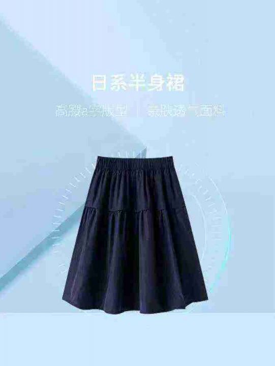藏蓝色休闲半身裙206件6.8,面料舒适,松紧腰,拼接设计,做工可,码数1-3...