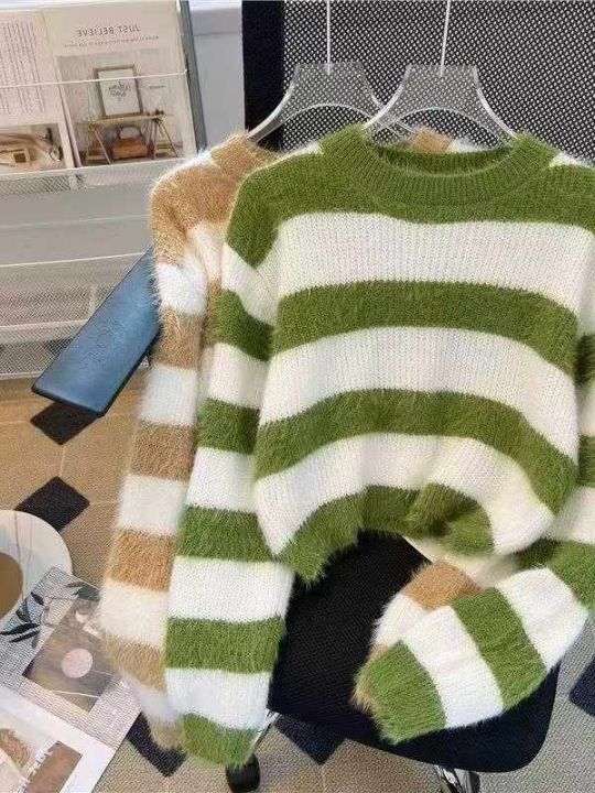 捡漏款,春秋新款网红复古撞色条纹圆领套头毛衣,2款多色,独立包装,面料...