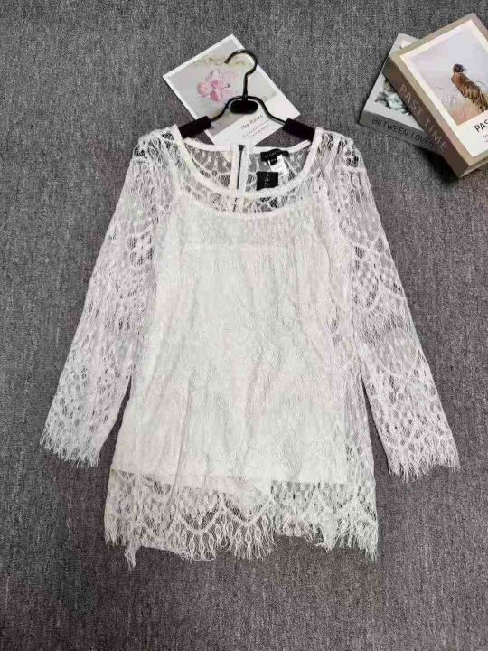 洋气高档网纱蕾丝上衣两件套,整款三色(黑色为主),品质好带吊牌,数量780件左右,码数s-3xl,独立包装,全清5.5,分货0.5