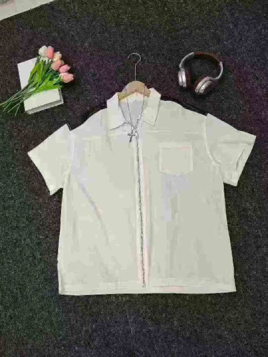 衬衫男夏季小众设计感撞色短袖衬衣美式高街潮牌宽松休闲外套