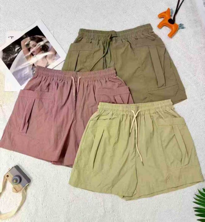 夏季大码女装高腰百搭阔腿裤复古工装口袋短裤