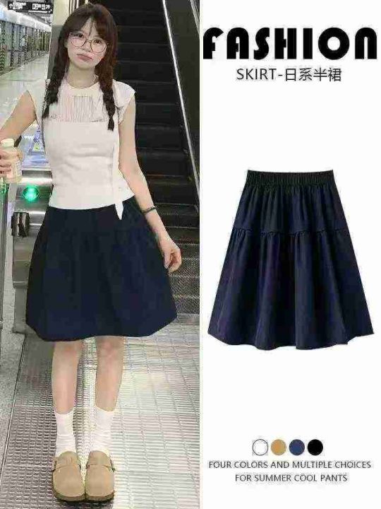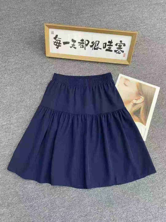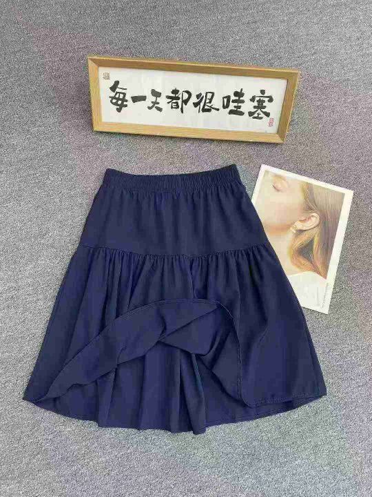 藏蓝色休闲半身裙206件6.8,面料舒适,松紧腰,拼接设...