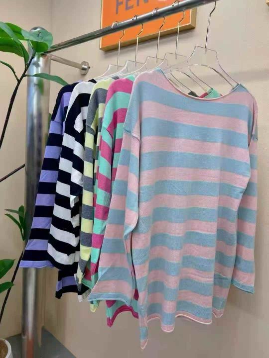 秋季新款宽松长款条纹针织衫,数量2000件左右,单款5色,均码宽松版型,独立包装,分货➕1随机配。