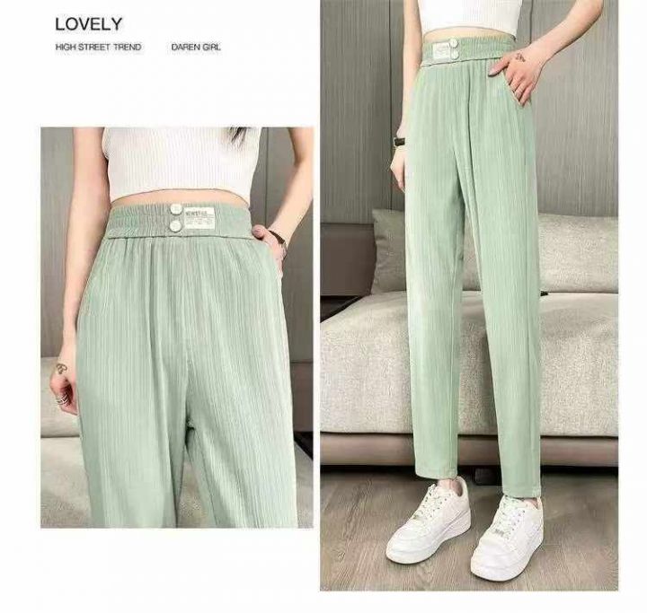 夏季新款网红宽松显瘦冰丝弹力休闲萝卜裤,独立包装,工厂新货码数2、 4、 ...