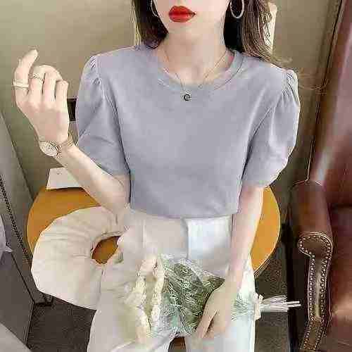 全清价5.8171件,冰丝螺纹短袖t恤女夏季2024新款女装圆领体恤法式泡泡袖洋...