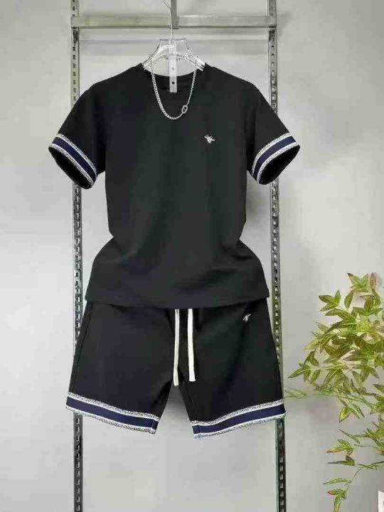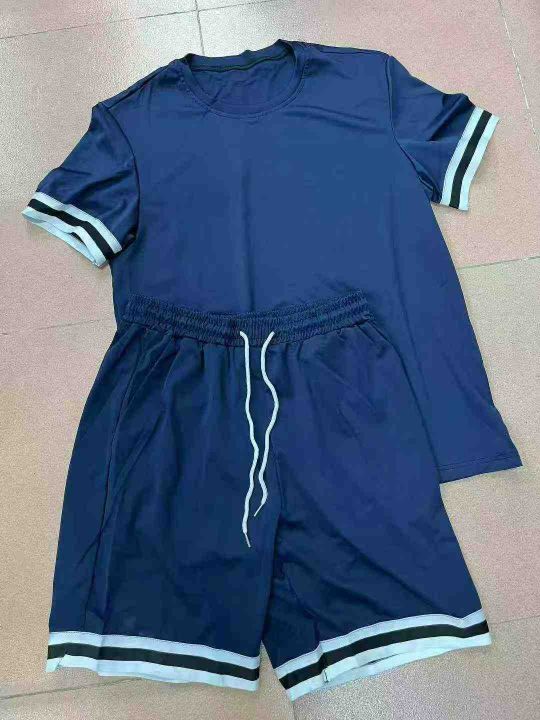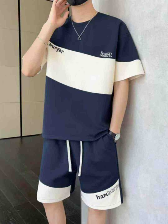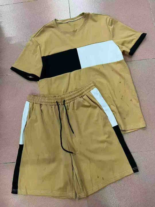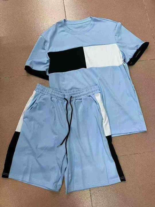 男装套装,夏季男装精品时尚拼接潮流短袖短裤套装,面料舒适,1500件,均码,分货➕1