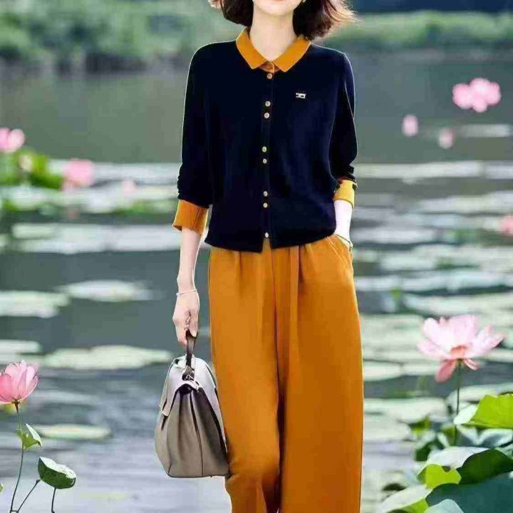 时尚简约套装2026新款撞色翻领POLO衫上衣时尚洋气长袖...