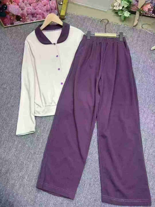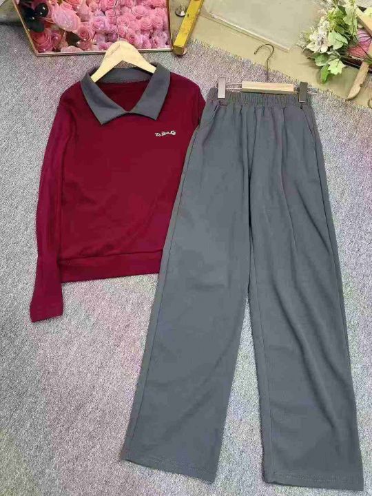 时尚简约套装2026新款撞色翻领POLO衫上衣时尚洋气长袖长裤两件套,3个款多色,1到6码,独立包装,货品干净,510套左右,9.5清,分货加1