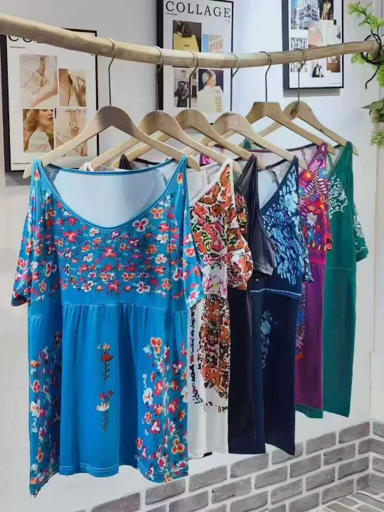 B-55-C123,码数S一5XL,数量660件左右,全部独立包装,单款多色,外贸T恤,大码T恤,波西米亚民族风格