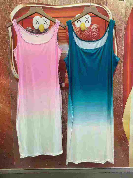 外贸时尚连衣裙,非常哇塞的渐变色U领收腰连衣裙,独立包装S到2XL码共849条全清5.8条一条