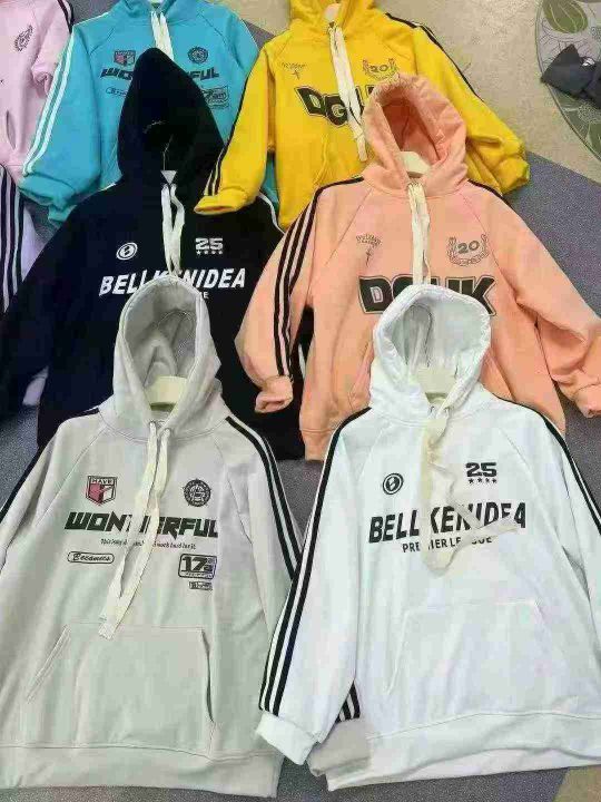 480件全清22元,50件起23元,均码宽松版,双层帽包边后领,美式潮牌运动复古三条杠加绒连帽卫衣