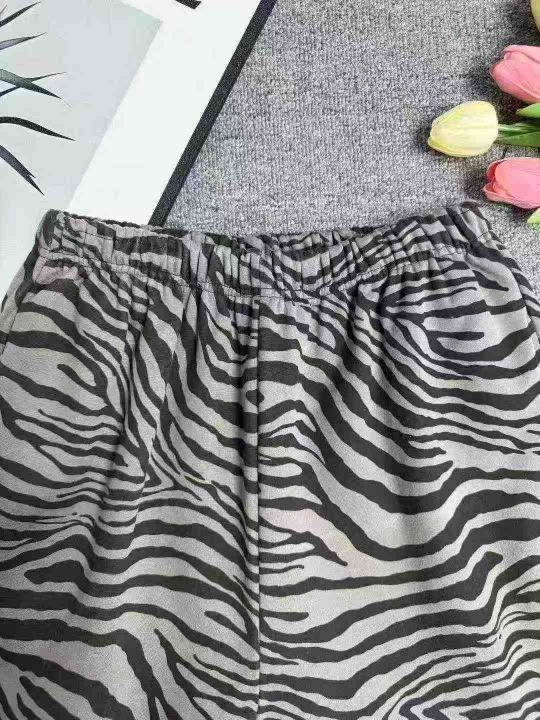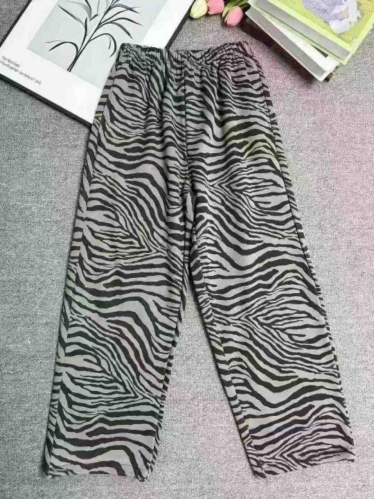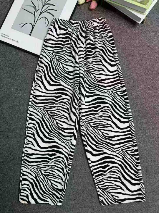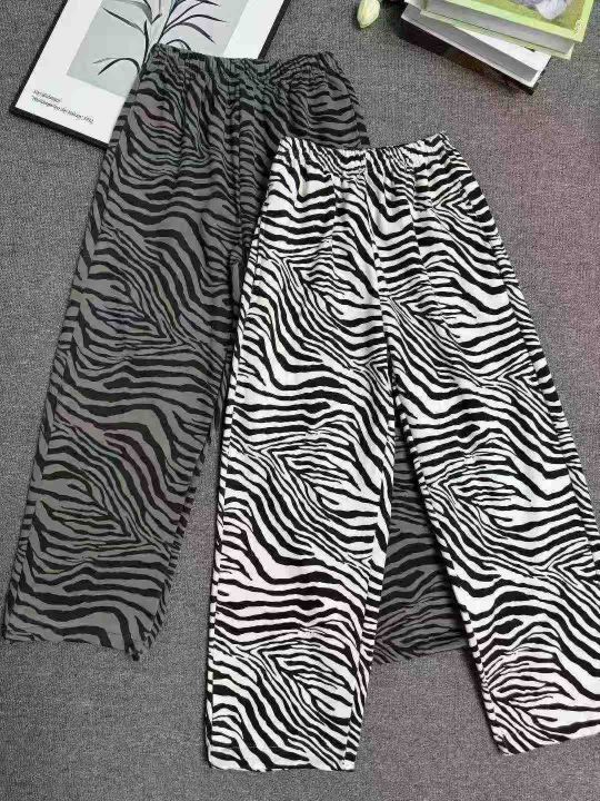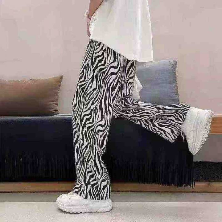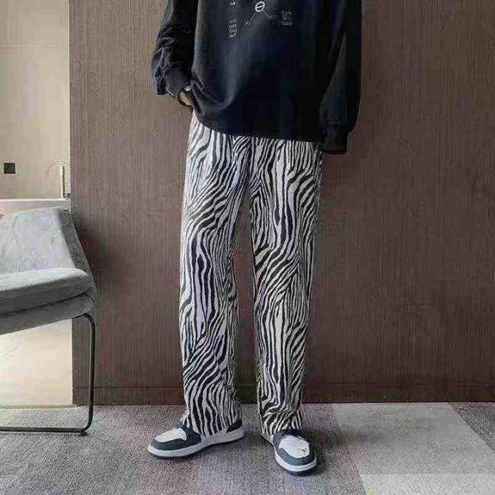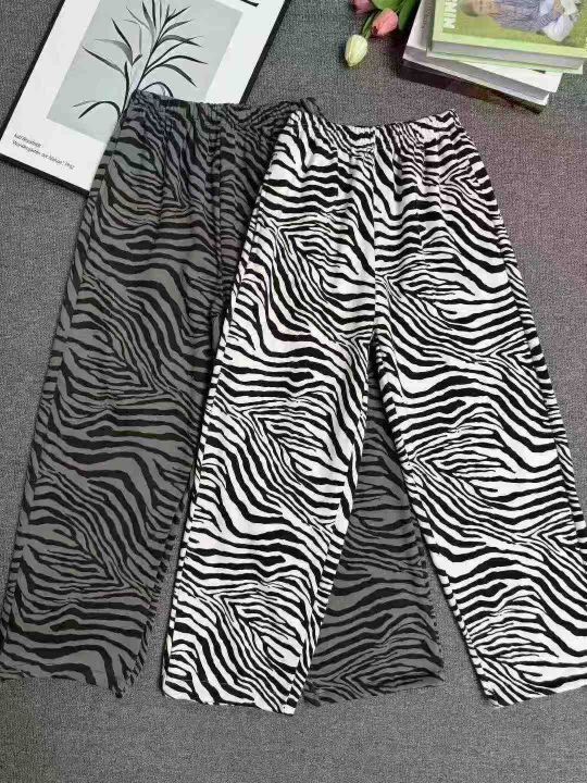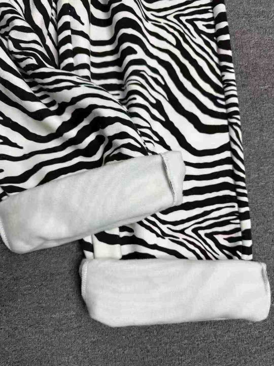 全清6.8分货+1秋冬季男女同款薄绒斑马纹裤子直筒宽松...