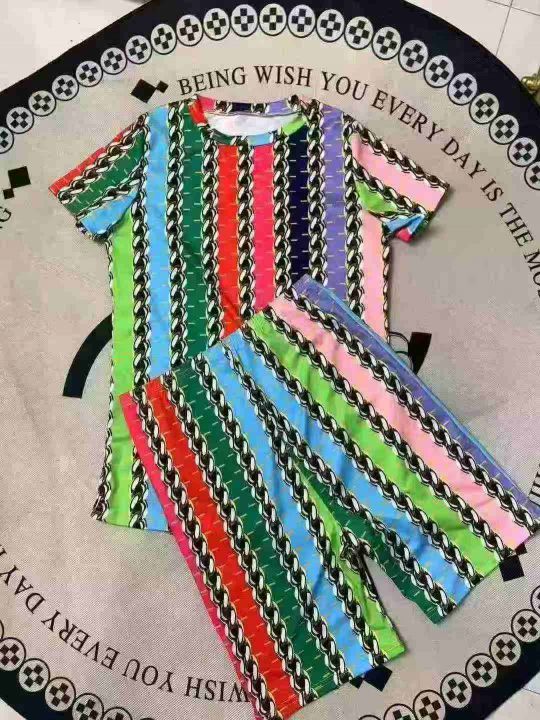7.8清115套跨境电商夏季新款欧美女装亚马逊气质数码印花圆领短袖套装 码数S-3XL 独立包装