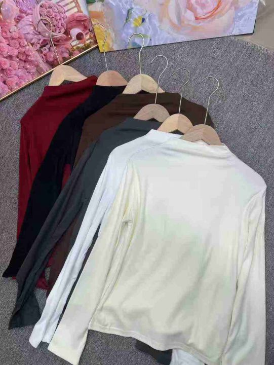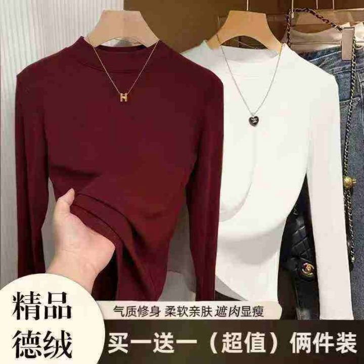 德绒保暖打底衫上衣秋冬半高领修身内搭长袖t恤女,弹...