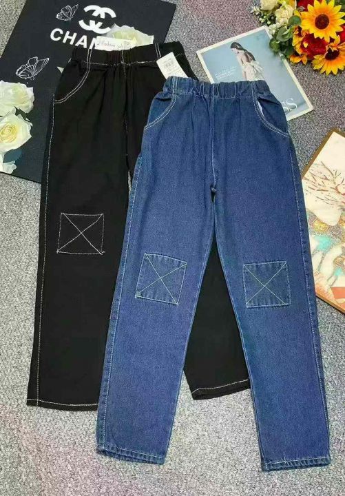 春季新款复古洗水棉高腰宽松设计款松紧腰牛仔老爹哈伦裤,独立包装,码数S-...